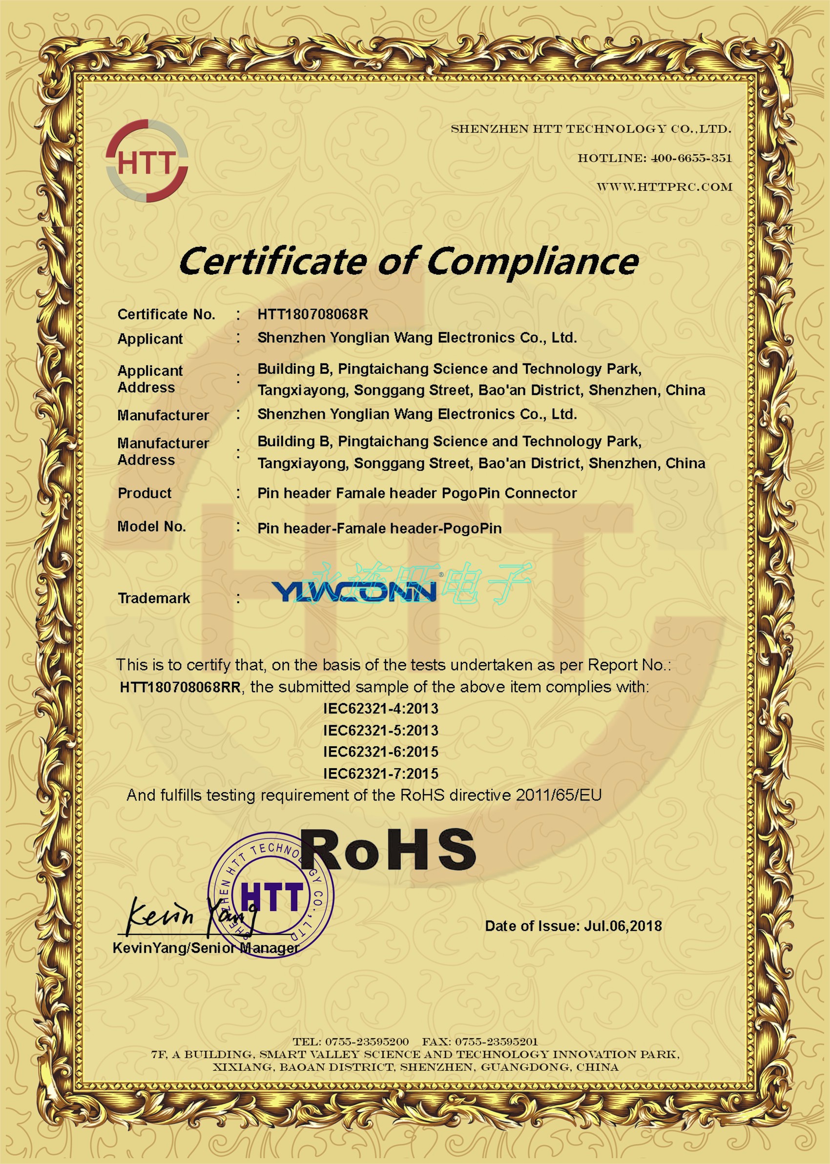 排針,排母,ROHS證書